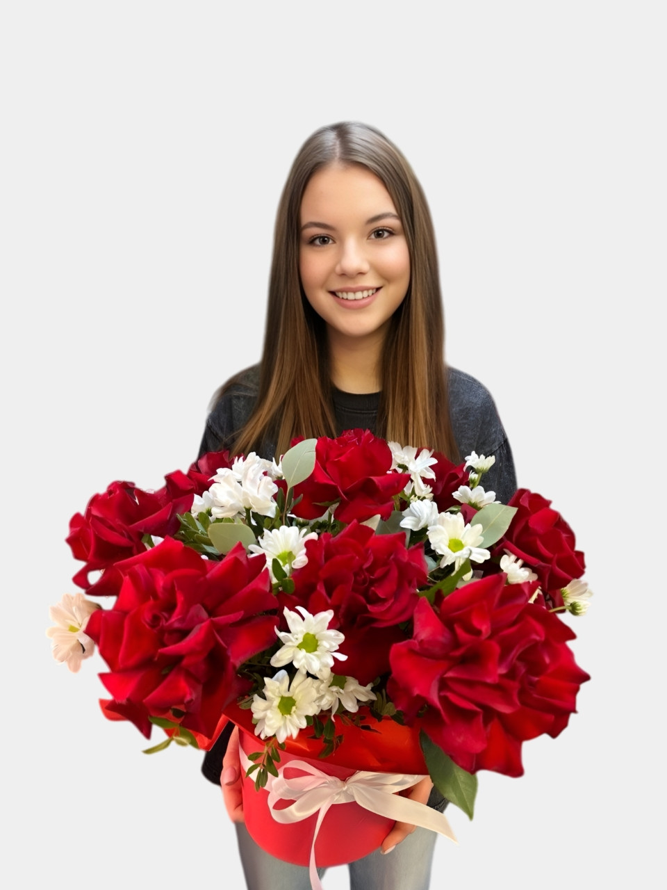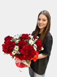 Получила в подарок «Алые паруса». Очень порадовало сочетание цветов – красные розы и белые хризантемы смотрятся изысканно. Коробочка маленькая, но вместительная, выглядит как законченная композиция. Стояла долго, даже не ожидала.